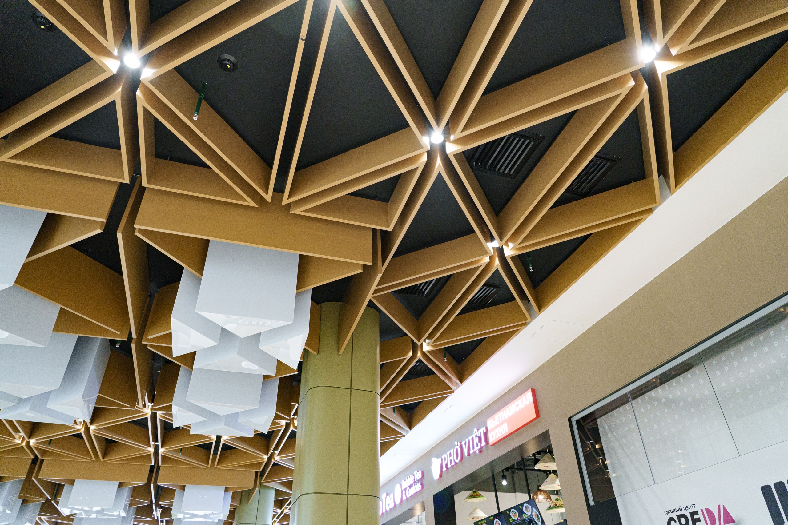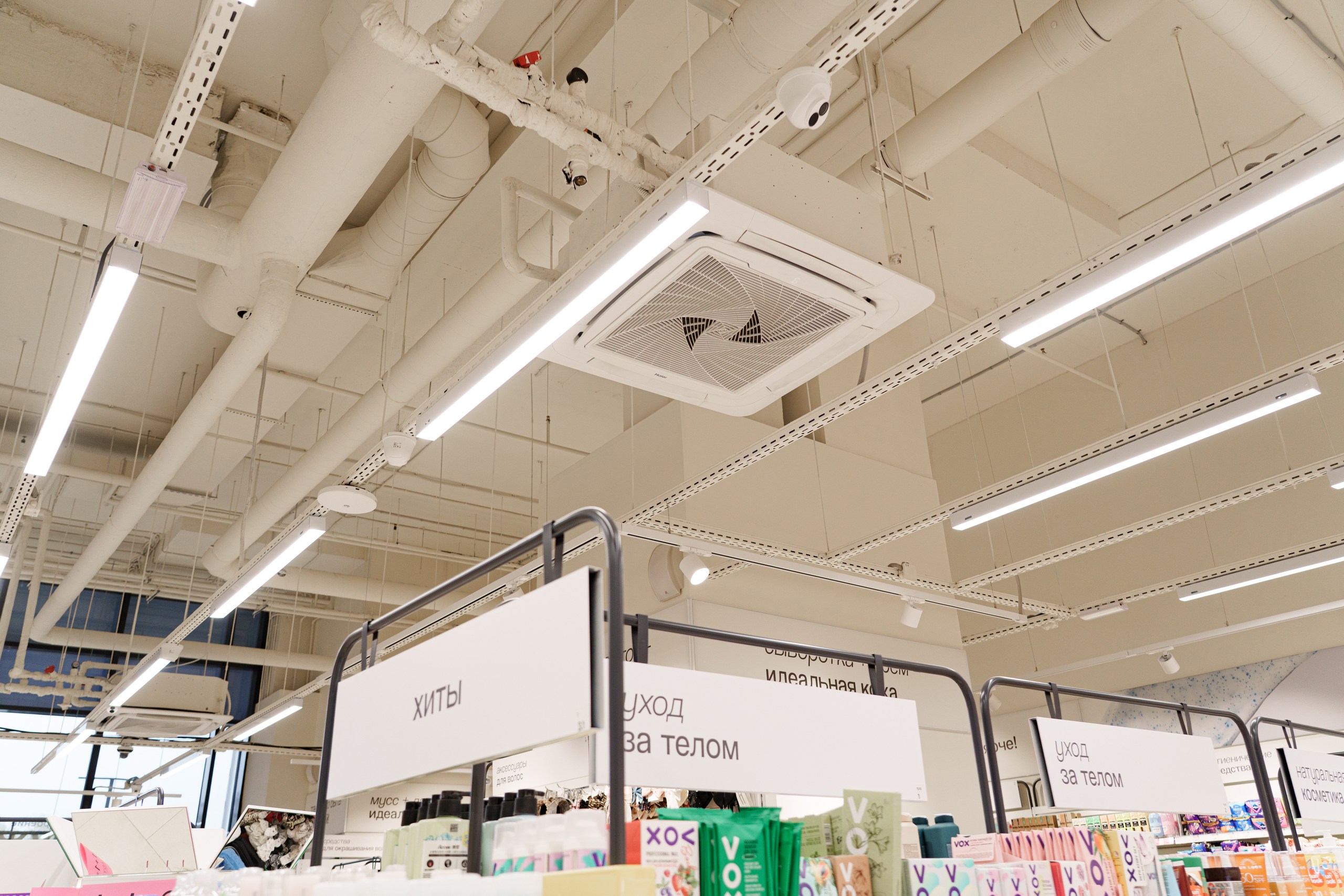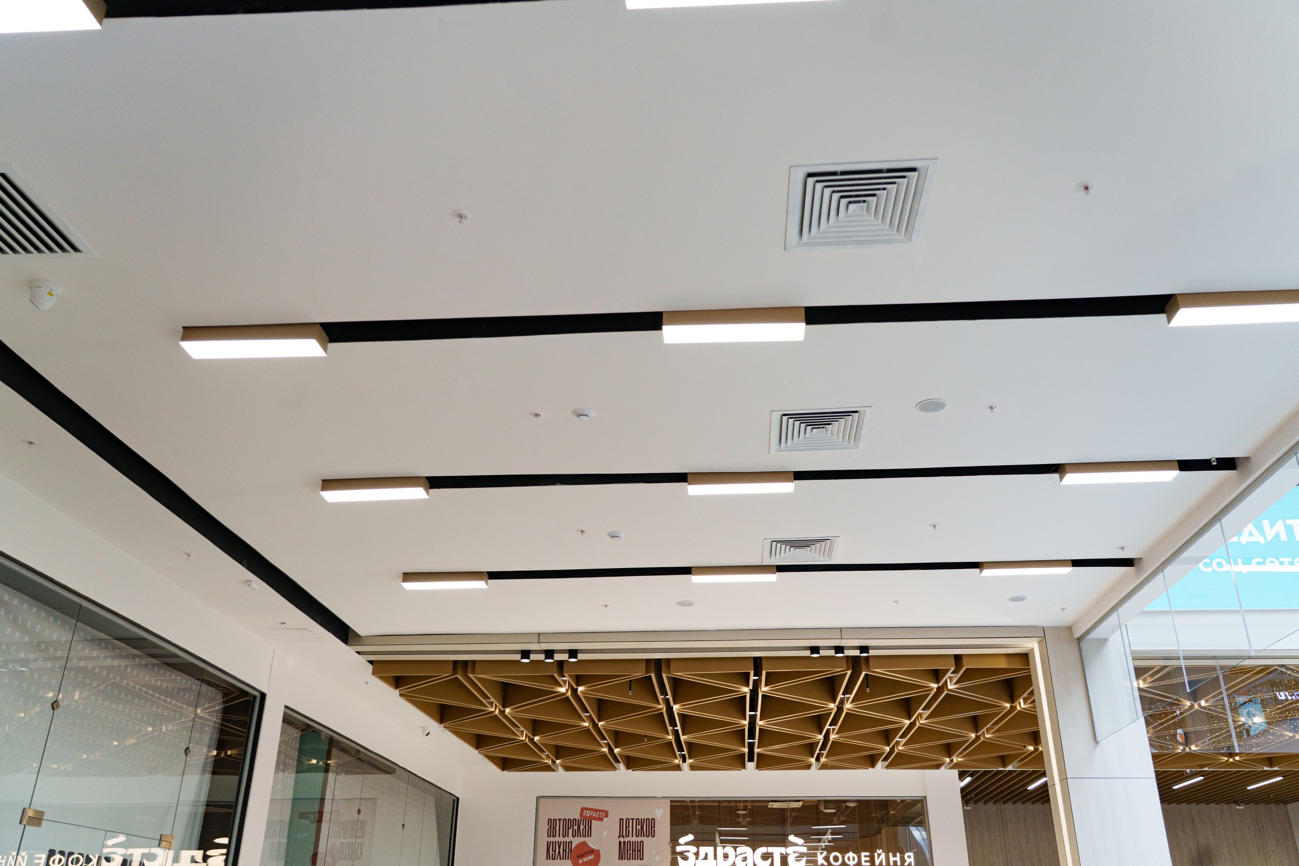 Все решения выполнены с учётом архитектуры ТЦ, высокой проходимости, смешанного назначения помещений, современных требований к безопасности, энергоэффективности и шуму и интеграции с центральной автоматикой